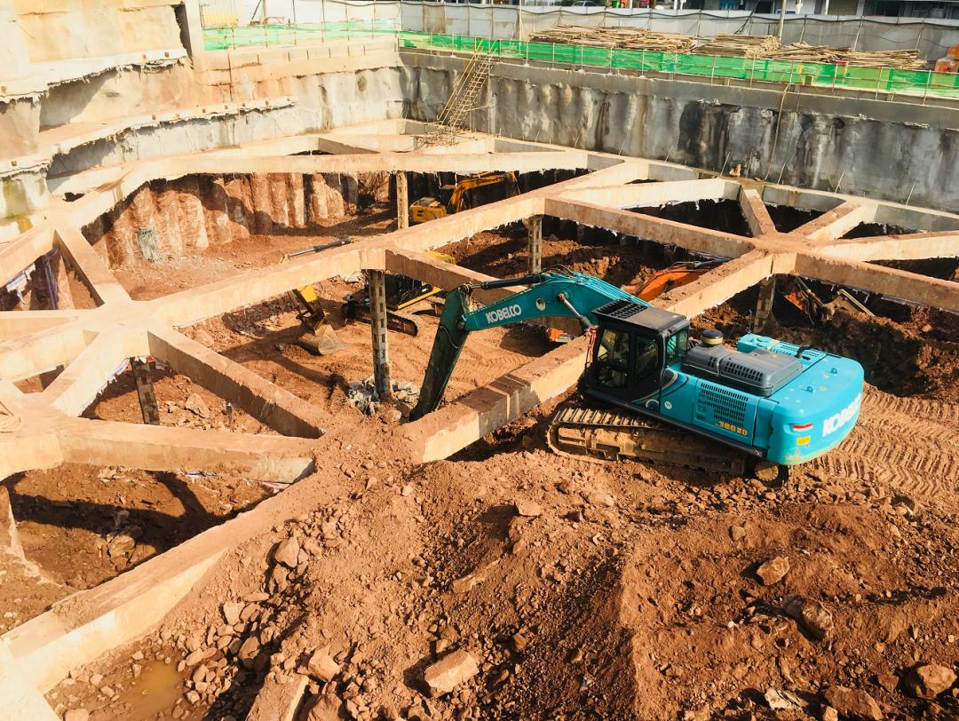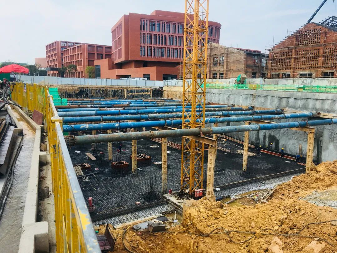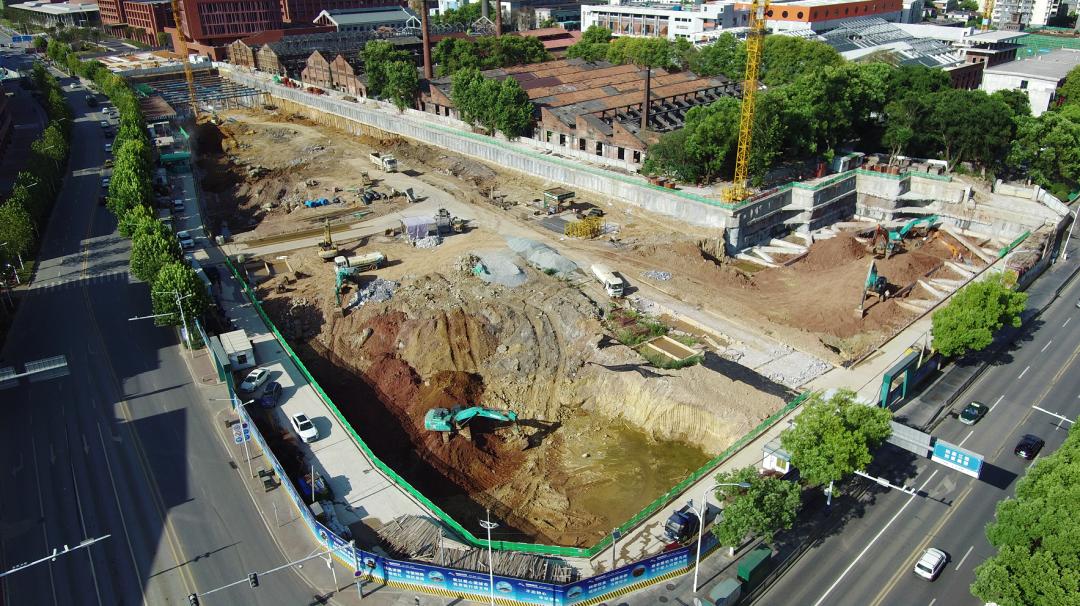 来到与陶溪川文化创意园区一路之隔的景德镇艺术职业大学人文学院实训基地项目工地,只见整个工地被围挡隔离,工地内基坑全面开挖,挖掘机忙碌作业,地下室架梁已经搭起,项目施工呈现出一片热火朝天的景象。 项目建设现场。记者 吴立群 摄 项目建设负责人卞真伪向记者介绍,此处地质复杂,地下有溶洞岩层,地下开挖了17.8米,施工中采用了三道锚索加一道混凝土支撑形成支护来保证质量安全,加上场地非常狭小,施工难度较大,是项目施工的一项难点也是亮点。 为克服闹市区社会关注度大、交通流量大,以及炎热天气对施工的影响,项目部严格落实安全文明环保要求和防暑降温措施,合理安排计划,采取晚上开挖土方和浇筑混凝土等错峰施工的方式来保证进度。 西南角公寓、直播中心、商业人视效果图 西南角景观人行桥效果图 东南角罗马电影学院效果图 据介绍,该项目原名“景德镇陶溪川世界手工艺传承创新项目”。基地分三个片区,分别坐落于“老为民瓷厂区”三个角落,其中:东北角的功能为宿舍、酒吧、地下商业;西南角为公寓、商业、视频直播,包括地下能源、送货中心及商业,同时与陶溪川一期通过景观人行桥相连接;东南角为罗马电影学院。基地与周边地块结合,打造集商业、休闲、宿舍、酒吧、视频直播、教育为一体的文化园区。 卞真伪告诉记者,基地总用地59216平方米,总建筑面积为188803平方米。目前,东北角桩基作业已完成80%,即将开始土方开挖;西南角土方开挖完成50%,北侧区域即将进行地下室地板浇筑;东南角桩基作业已完成90%,即将开始土方开挖。工程预计在2023年9月30日开始交付使用,项目部将保质保量完成工期任务