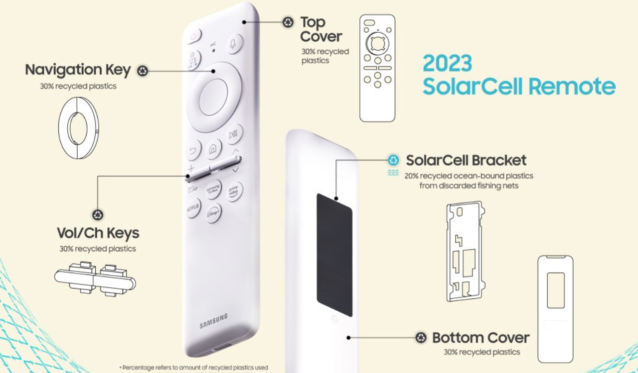 三星推首款带太阳能面板的遥控器,塑料件 24% 来自回收废